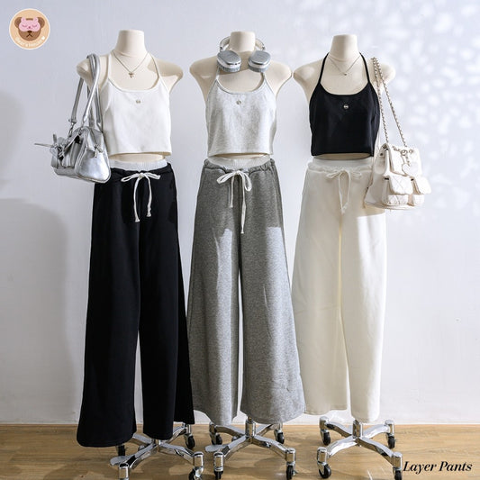 Layer Pants กางเกงวอร์มผ้านุ่ม ขากระบอกใหญ่ งานป้าย
