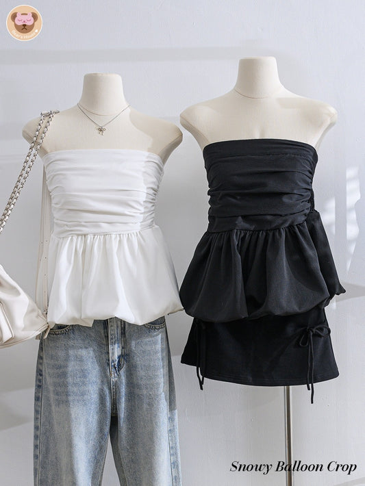 Snowy Balloon Crop เสื้อเกาะอก บอลลูน ผ้าครัช ดีเทลเเต่งจีบ หย่น ช่วงอก ด้านหลังสม็อค เย็บ 2 ชั้น ไม่ต้องกลัวบาง