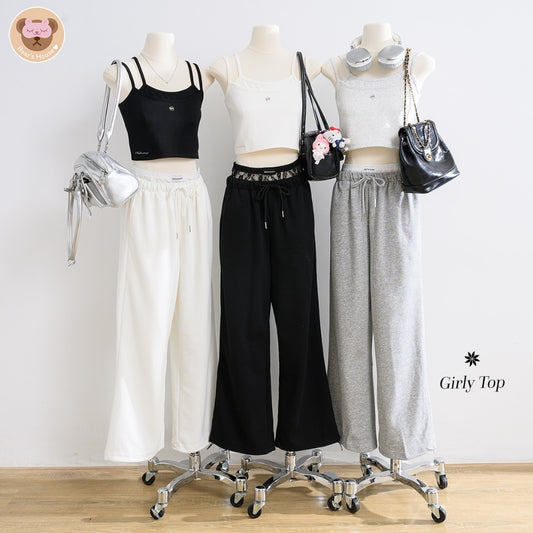 Girly Top เสื้อครอปสายเดี่ยว เเต่งอะไหล่เงิน ดีเทลปักโลโก้ด้านล่างขวา ทรงสวย รุ่นนี้น่ารัก